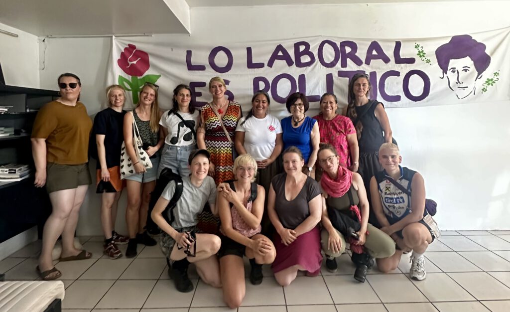 Für die Verbesserung dieser Bedingungen kämpft u.a. das Colectiva de Mujeres Rosa Luxemburgo. Im Sitz des Kollektivs begrüßen uns Norma und Bety. Beide blicken bereits auf langjährige Erfahrung als Arbeiterinnen in den maquilas zurück – und gleichzeitig auf eine lange Zeit der Organisierung im Kampf für Arbeiterinnenrechte. 2016 wurde als Resultat der gesammelten Erfahrungen dann das Colectiva offiziell gegründet. Der Name Rosa Luxemburgo wurde bewusst ausgewählt: Einerseits in Erinnerung daran, dass Frauen schon immer in der Arbeiter*innenbewegung gekämpft haben, andererseits aber auch aus der Erkenntnis heraus, dass die Kämpfe einer Luxemburg zwar schon Teil der Geschichtsschreibung sind – sich besonders Arbeiterinnen in den maquilas aber immer noch in ähnlichen Situationen wie denen, gegen die damals gekämpft wurde, befinden.